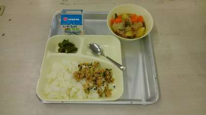 7月1日(水)の給食 公開日 2020/07/01 更新日 2020/07/01 お知らせ 7月1日(水)の給食は、ごはん・牛乳・豚肉とジャガイモの煮もの・オクラの梅風味・ツナっ葉いためです。ツナっ葉いためは、十分に油を切ったツナの中に湯でもどして刻んだダイコンの葉を加え炒めました。ツナの塩加減とダイコンの葉のサクサク感によって、いくらでもご飯が食べられます。 いいね(0)