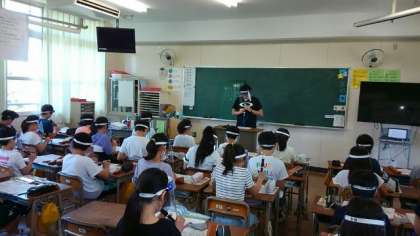 6年生は音楽科でリコーダーの練習をしていました。曲は、いきものがかりの「ありがとう」、教科書から「星空はいつも」です。「ありがとう」では、1オクターブ高い「ミ」や「ファ」が難しかったようです。親指がリコーダー裏側の穴をふさぐのを少しずらす加減が難しいです。「星空はいつも」では曲想を想像しながら演奏できたでしょうか。