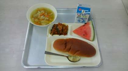 7月8日(水)の給食 公開日 2020/07/08 更新日 2020/07/08 お知らせ 7月8日(水)の給食は、黒糖パン・牛乳・かぼちゃのミートグラタン・スープ・スイカです。すいかは、叩けばいい音が鳴るのが美味しいと言われています。それ以外に、皮の部分のしま模様がはっきりしているものも美味しいそうです。 いいね(0)