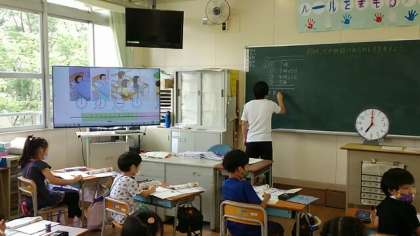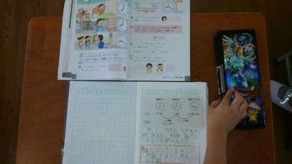 2年2組では、朝起きる場面や、登校する場面の絵を見て、その時刻について考える学習をしました。時計を正確に読むことに加えて、午前なのか午後なのかを考えて時刻を答える必要があります。生活の場面ではデジタル時計が多いですが、ご家庭でも、アナログの時計を見る機会があれば、お子様に時刻を尋ねてみてください。