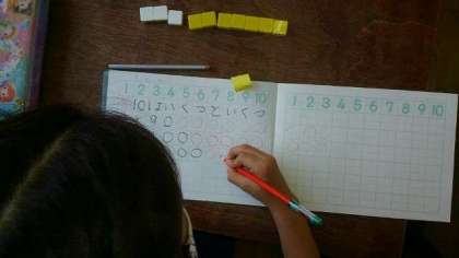 1年生では算数科で、「10はいくつといくつ」を考えていました。10の分解は、くり上がりのあるたし算やくり下がりのあるひき算につながっていきます。確実に習得できるように、繰り返し練習します。