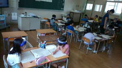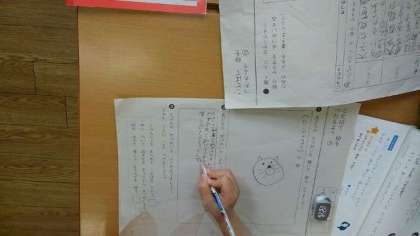 2年1組では、国語科「ことばで絵をつたえよう」を学習していました。前時に、自分が考えた絵を言葉だけで相手に伝える文章を作りました。本時では、実際にその文章を相手に伝え、それを聴いて相手は絵を描いていました。言葉だけでは、なかなか思うように伝わらないようです。