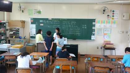 4年生では、算数科で小数について学習しています。本時では、mで表された橋の長さをkmで表すためにはどのようにすればいいか考えました。kgとg、LとdLやmlのように、単位の換算は児童にとって結構難しいようです。小数も整数と同じように位があって、それぞれの位の数で表すことは整数と同じ仕組みであることに慣れてほしいです。