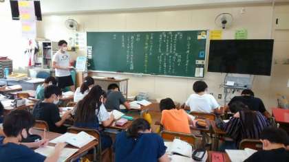 6年生は国語科で「話し合って考えを深めよう」を学習しています。観光案内では、標準語で案内される方がいいか、当地の方言で案内されるほうがいいのか、自分の立場をはっきりしてから、それぞれの立場で話し合いをしました。まず、ノートに自分はどちらの立場をとるのか書きました。自分と違う立場の考えに反対ばかりしていると話し合いが進まないけど、すぐに賛成すると話し合いが深まらないことに気をつけながら話し合いをしました。