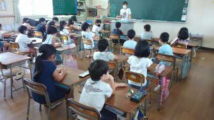 3年生1組では、1学期まとめのお話がありました。1学期の様子を振り返って「困ったことがあったら何でも相談できる学級にしよう」「助け合える仲間にしよう」という声かけがありました。子どもたちは時々うなずきながら真剣に聞いており、2学期もよい学級にしていきたいという気持ちが見られました。