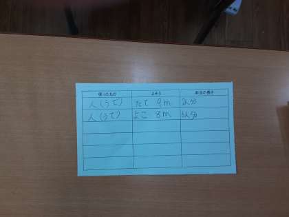 長い長さを表そう 公開日 2020/08/26 更新日 2020/08/26 お知らせ 3年2組では、給食用の長い机を教室へ入れるために縦と横の長さを測る方法を考えていました。班で協力しながらいろいろな方法が出され実際に測っていました。性格に測るのは難しいようです。 いいね(0)