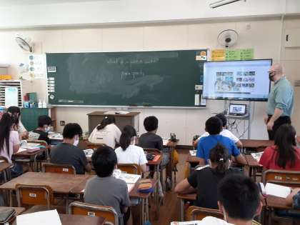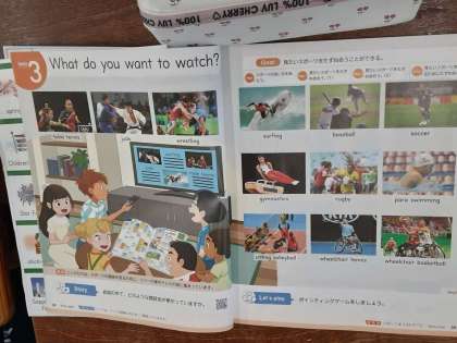6年生は、英語科「What do you want to watch?」を学習していました。教科書に載っているオリンピック競技の写真を見てから、相手が英語で話すのを聴いて、どの競技を観たいのかを答えます。1度で聞き取るのは難しいようで「Once more」の声が聞かれました。
