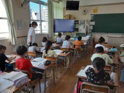 3年2組では国語科「紙ひこうき」を学習しました。詩を音読して、第3連からなる詩全体の構成を確認しました。それぞれの連で、紙ひこうきを見ている作者の気もちが、どのように変わっていくのか考えていきます。
