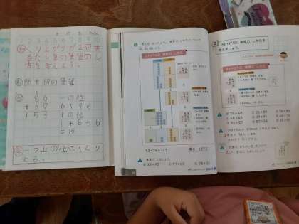 2年2組では、「86+67」のように、算数科でくり上がりが2回あるたし算について考えました。ひっ算を書く時に、位をそろえることやくり上がった数を書き間違えないことに気をつけて、正確に解けるようになってほしいです。