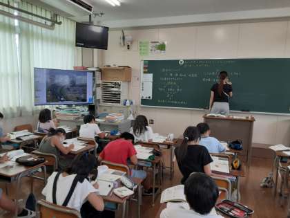4年生は、社会科で「命とくらしをささえる水」の学習を進めています。水道から出てくる水は、どこからどこを通って送られてくるのかについて調べました。地図を見て、琵琶湖から川を流れている水が送られてくることがわかりましたが、その間に浄水場という施設があるようです。どんな施設なのでしょうか。