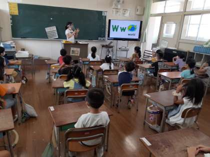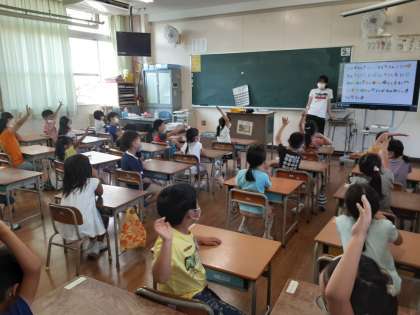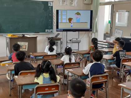 朝の外国語活動 公開日 2020/09/01 更新日 2020/09/01 お知らせ 1年生は、朝タイムに外国語活動の学習をしていました。子どもたちは画面を観ながら、アルファベット順に聴こえてくる「Queen」「World」などの単語を真似て発音していました。「知っている言葉はありましたか?」という先生からの問いかけに、「『Apple』を知っている」などの答えが出ました。 いいね(0)