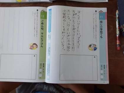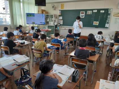 3年2組では道徳科「同じ小学校でも」を学習していました。お父さんがアメリカ人、お母さんが日本人のレンくんは、毎年7月にハワイから日本に帰ってきます。ハワイの小学校に通うレンくんは、日本の小学校では掃除や給食を自分たちで行っていることに驚いていました。調べると他にもいろいろな違いが…。ハワイと日本の違いを認め合いながら、互いのつながりを大切にしなければいけないことを学んでほしいと思います。
