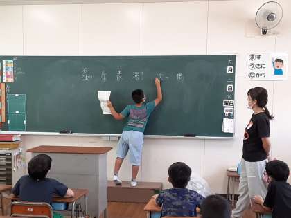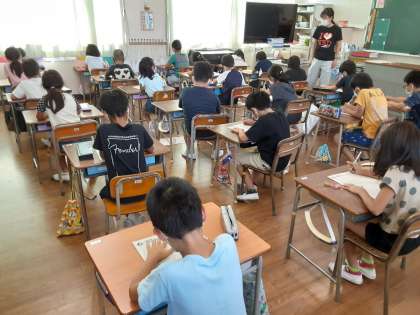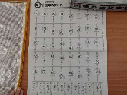 そして、漢字テストが開始されました。「湯」の右下部分のように、「はね」に気をつけて解けたでしょうか。「100点が取れるまで何度でも」の意気込みでがんばってください。