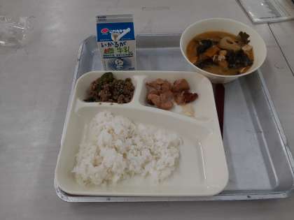 9月3日(木)の給食は、ごはん・牛乳・鶏肉のてり焼き・みそ汁・なすのそぼろいためです。本日のみそ汁の具は、うす揚げ・わかめ・たまねぎ・オクラ・かぼちゃです。かぼちゃは夏が旬の野菜で、6月から10月にかけて給食によく登場します。「旬」とは、その食べ物がたくさん収穫できて味もよく、値段も安い時期のことです。かぼちゃは、煮もの・シチュー・グラタンなどいろいろな料理に使いますが、今回はみそ汁に使用しました。