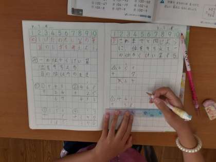2年生では、これまでいろいろなたし算やひき算を解いてきたので、たし算なのにひき算をしてしまった児童や、くり上がりがないのにくり上がった計算をしてしまった児童がいました。落ち着いて式や問題を解くようにして頑張ってほしいです。
