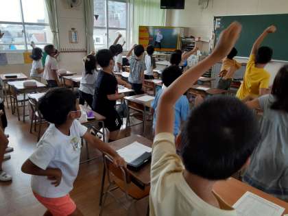 2拍子にのってえんそうしましょう 公開日 2020/09/04 更新日 2020/09/04 お知らせ 3年1組では、音楽科で「ゆかいな木きん」をリコーダーで練習していました。グループごとに交代で数小節ずつ演奏していきます。2拍子のリズムに乗って演奏できるように練習していました。 また、「運動神経がよくなるダンス」をビデオを観ながら踊っていました。前回よりも慣れてきたようで、さらにリズムよく体を動かせていたました。 いいね(0)