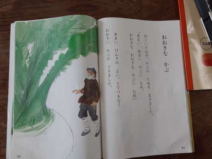 おおきな かぶ 公開日 2020/09/07 更新日 2020/09/07 お知らせ 1年生は国語科で「おおきな かぶ」を学習します。導入では、先生が「おおきな かぶ」を朗読しました。今、1年生では、他の人が文章のどの部分を読んでいるのかをしっかり聴くことができるように、読んでいる箇所を指でなぞりながら聴くようにしています。ご家庭でも、同様にお話しいただけましたら有り難いです。 いいね(0)