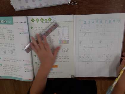 たし算とひき算のひっ算 公開日 2020/09/08 更新日 2020/09/08 お知らせ 2年生では、算数科「たし算とひき算のひっ算(2)」のまとめ練習をしていました。くり上がりのある3けたまでのたし算やひき算、( )の使い方など、これまで学習したことを思い出しながら、速く正確にできるように練習を積み重ねていました。解けた児童は挙手して、先生が丸付けに来るのを待っています。 いいね(0)