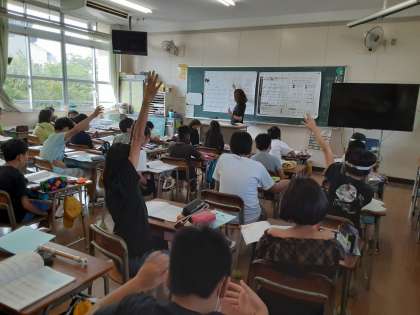5年生は音楽科で「Believe」を学習していました。先生が伴奏を流すと、思わず口ずさむ児童が何人もいました。