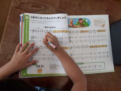 ゆかいな木きん 公開日 2020/09/08 更新日 2020/09/08 お知らせ 3年生では音楽科で「ゆかいな木きん」を学習しています。木琴だけでなく、リコーダー、鍵盤ハーモニカ、ピアノなどで、2拍子を感じながらリズムに乗って演奏します。2組では、2分音符、2拍子の拍のとり方、階名を確認して、リコーダーで演奏しました。 いいね(0)