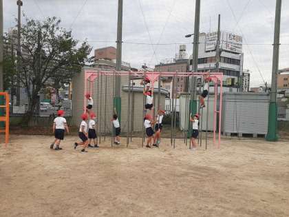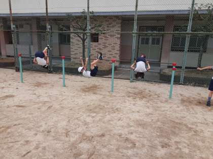 鉄棒 公開日 2020/09/11 更新日 2020/09/11 お知らせ 3年1組では体育科で鉄棒をしていました。主に逆上がりの練習をしていましたが、さらに、足かけ後ろ回りや腕立て前転などを練習している児童もいました。待っている児童は、のぼり棒など、他の固定施設で運動していました。 いいね(0)