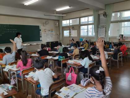 3年2組では、社会科でパン工場で働く人について調べていました。直接パンを作る仕事に携わる人以外に、味や色どり、食べやすさ、季節などを考える人たちがいて、新しい商品を開発する会議が行われていることを知りました。パンをよく買う人の立場に立って考えることが大切なことがわかりました。