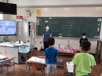 水のかさ 公開日 2020/09/14 更新日 2020/09/14 お知らせ 2年生は算数科で「水のかさ」の学習が始まりました。2種類の水筒をもて、どちらの方がよりたくさん水が入るのか比べる方法について考えました。片方の水筒に水を満タンに入れて、もう一方の水筒に入れ換えてみる方法、コップを使い何倍入るのかを比べる方法が出されました。 いいね(0)