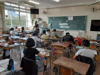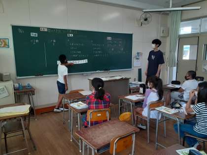 5年生では算数科で数のきまりについて学習しています。本時では、奇数と偶数の分け方について学びました。1から20までの整数を2つに分ける方法について考えます。「1・3・5…」「2・4・6…」の分け方は普段の生活でもよく使いますが、どのようにして分けたのかをいざ説明するとなると難しいようです。