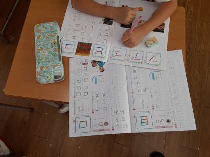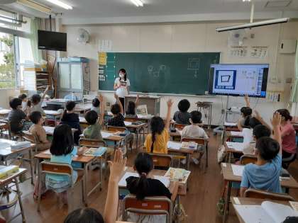 漢字とカタカナ 公開日 2020/09/28 更新日 2020/09/28 お知らせ 1年生は、漢字「口(くち)」について学習しました。読み方や書き順を学んだ後、「口」を使った言葉について出し合いました。その後、カタカナ「ゴ」「ア」「フ」を習いました。進出漢字とカタカナを習っていますが、ていねいに粘り強く練習をしています。ノートには自分たちなりに丁寧に書かれた字が見られます。 いいね(0)