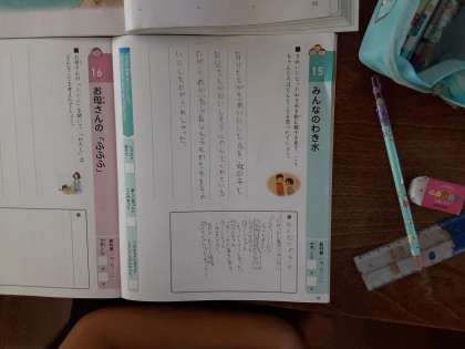 3年2組では道徳科で「みんなのわき水」を学習していました。多くの人が飲み水として利用している「わき水」を、いつもより早い時刻に汲みに来た「こうちゃん」と「けんちゃん」は、その場所が落ち葉で埋まっているのを発見しました。「ご自由にお使いください」と書かれたほうきを見つけ、2人が取った行動について考えを出し合いました。