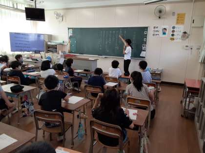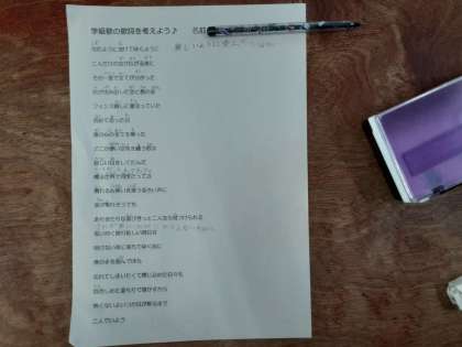3年1組では、学級の歌について話し合っていました。「みんなだけの笑顔が広がるように」「25人だけの空が広がる瞬間に」など、どんな歌詞がいいのか意見を出して話し合っていました。時々ユニークな意見が出てきて、笑い声も聞こえてきました。素敵な歌をつくって、まとまった学級になってほしいです。