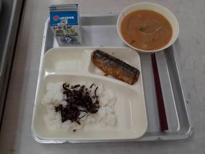 10月2日(金)の給食は、ごはん・牛乳・さんまのみぞれかけ・みそ汁・牛ひじきそぼろです。サンマには、体をつくるたんぱく質や体の調子を整えるビタミンB2が多く含まれています。脂質には、脳の働きを助ける成分や、血管の病気を予防する成分などが含まれています。