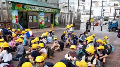 10月6日(火)1・2年生が遠足で天王寺動物園に行きました。出発前には道で歩く時や電車に乗るときのマナーについてお話がありました。ほかのお客さんに迷惑をかけないように気をつけて動物園に着きました。