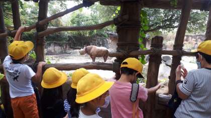 はじめに、サイやカバ、キリンなど、アフリカサバンナの動物を見学しました。