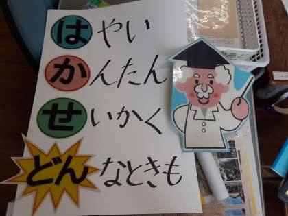 本校では、主に算数科の学習で、いくつかの考えが出され、どれも正しい場合、どの考えがより「早く」「簡単に」「正確に」「どんなときも」使えるのか、話し合いをする取り組みを進めています。「は」やく、「か」んたんに、「せ」いかくに、「どん」なときもの先頭の文字をつなげて、「はかせどん」と呼んでいます。