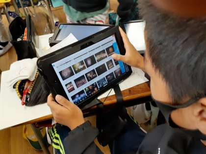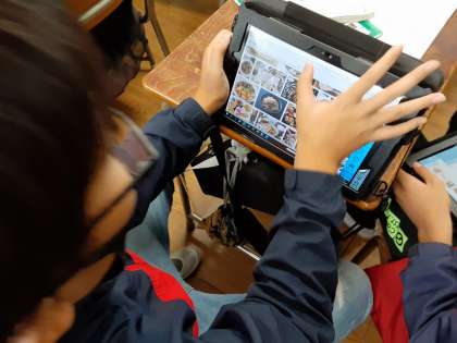 和の文化を調べよう 公開日 2020/10/09 更新日 2020/10/09 お知らせ 5年生では国語科で「和の文化を受け継ぐ—和菓子をさぐる—」を学習しています。グループで和の文化についてテーマを決めて調べ、パンフレットを進めています。タブレットで各グループのテーマに沿って調べていました。「和食」「花火」「和服」「和室」など、グループごとに調べるテーマは多岐にわたっていました。 いいね(0)