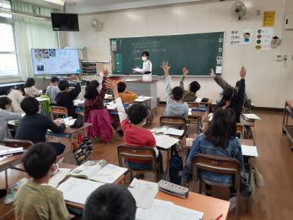 3年1組では社会科で、「家で食べている食べ物はどこから運ばれてくるのか」について調べていました。子どもたちが調べてまとめた表を基に、各食べ物の産地について発表しました。日本だけでなく外国産があることも知りました。