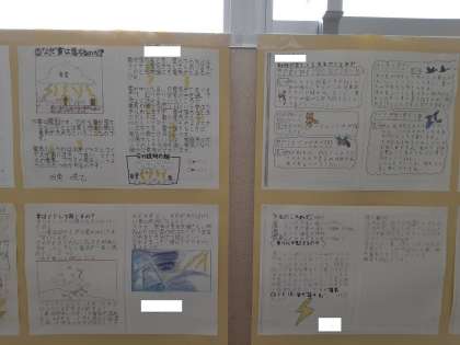 この日の天気は? 公開日 2020/10/19 更新日 2020/10/19 お知らせ 5年生は理科で「雲と天気の変化」について学習しています。一通り学習して、「たしかめよう」を考えていました。雲画像を見て、アメダスの降水量(ア)と(イ)のどちらの時の画像なのかを考えました。「アだ!」「いや、イだ!」という激しい声のやりとりが聞かれました。 廊下には、子どもたちが天気について調べてまとめた掲示物が貼られていました。 いいね(0)