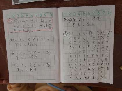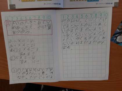 「×」の書き順 公開日 2020/10/20 更新日 2020/10/20 お知らせ 2年生では算数科で「かけ算」について学習を進めています。2組では、「〇倍」するときの式について考えていました。倍の大きさを求めるときもかけ算を使うことを学びました。 授業の最後に書く振り返りも、しっかり書けるようになってきました。でも、少し慣れてきて「×」の書き順を間違えてしまう子がいました。気をつけてほしいです。 いいね(0)