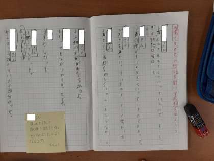 それでも、みんなの前で自分で作った物語をがんばって読んでいました。聞いている友だちも、優しい一言感想をノートに書き留めていました。ただ、自分に対しては、「恥ずかしかった」など控えめな感想が書かれていました。