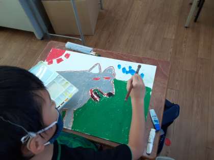 背景を絵の具で
