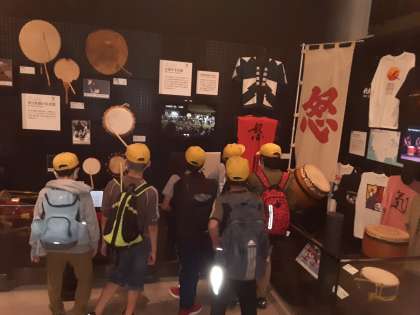 和太鼓は日本の文化、みなさんに馴染みがあるようで、じっくり見ていました。