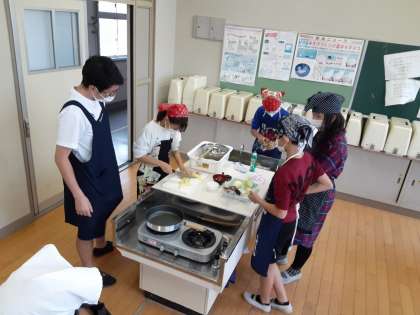ジャーマンポテトを作ろう 公開日 2020/10/23 更新日 2020/10/23 お知らせ 6年生では家庭科で調理実習「ジャーマンポテトを作ろう」に取り組みました。材料は、ジャガイモ・玉ねぎ・ベーコンです。グループで協力して実習をします。「役割をしっかり決めて!」を確認して始まりました。洗う人・皮をむく人・切る人・焼く人・盛り付ける人など役割をしっかり果たして、美味しいジャーマンポテトを作ってほしいと思います。 いいね(0)