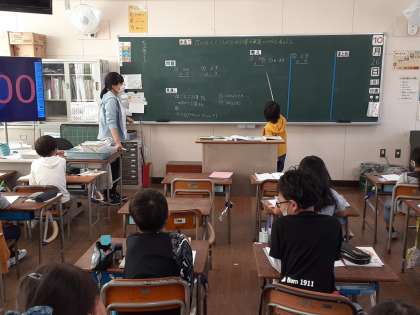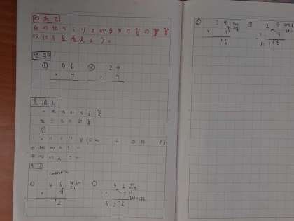 位をそろえて 公開日 2020/10/26 更新日 2020/10/26 お知らせ 3年生では算数科で、百の位へくり上がるかけ算の筆算の計算の仕方について考えていました。一の位から計算するので、1の位からくり上がることによって、十の位もくり上がることがあります。計算が複雑化することで、「1の位から計算する」「位をそろえる」は重要になってきます。特に「位をそろえる」は子どもたちには飽きるくらいに何度も出てきています。 いいね(0)