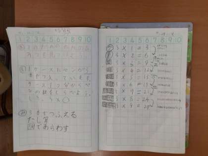 タブレットの調子が悪くても 公開日 2020/10/27 更新日 2020/10/27 お知らせ 2年生では算数科で「かけ算」を学習しています。2組では3の段の九九について考えていました。タブレットを使って、デジタル教科書の画面を大型テレビに写そうとしていました。ところが、タブレットの調子が悪く、画面に写すことができませんでした。それでも、みんながんばって考えて、3の段の九九をつくり上げました。 よくがんばっていました。あとは、3の段をしっかり覚えましょう。 いいね(0)