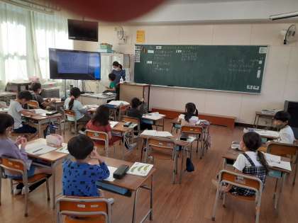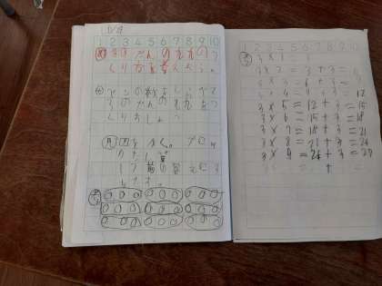 かけ算 公開日 2020/10/29 更新日 2020/10/29 お知らせ 2年生では算数科で「かけ算」の学習をしています。1組では3の段の九九の作り方を考えていました。タイルを使ったり、ノートに絵を描いたり、たし算を使ったりしていました。ノートを大型テレビに写し出して考えを説明していました。思ったことを伝えにくい児童もいましたが、先生から助言をもらいながら、がんばって説明することができました。 いいね(0)