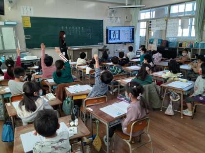 児童から「青もりけん」という発表がありました。1年生で県名が出るのは意外でした。先生から「ここは何と言いますか?」「おおさか」という受け答えもありました。それから、「〇〇けんもある」と、次々に発言がありました。1年生の知識の広がりに感心しました。