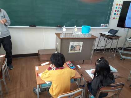 しかし、1年生にとっては、(あ)と(い)どちらが多いのかが気になっているようで、「(あ)の方が多い」「(い)にはコップ10杯分入っている」など、課題に合っていない意見が少なくありませんでした。