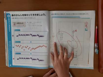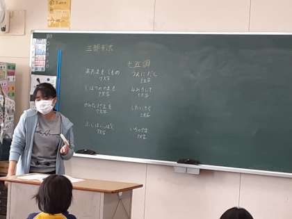その後「ふじ山」の歌詞の文字を数え、「7文字、5文字」「7文字、5文字」が続くことを確かめ、このリズムを「七五調」ということも学びました。「3部形式」「七五調」言葉は難しいですが、曲の感じやリズムを音楽としてつかんでほしいと思います。