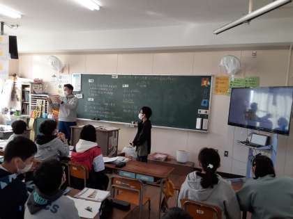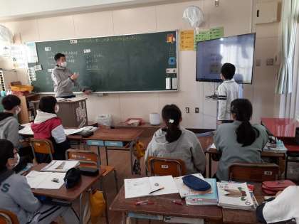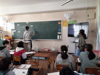 「1枚の重さを求める」見通しが出されました。また「10枚で78g、400枚で□g」、この比例の関係から求める見通しも出されました。「比例の式:y=7.8×X」から求める見通しも出されました。いろいろな見通しを出し合い、お互いに考えを補足し合って、自分がより解きやすい方法を探していました。